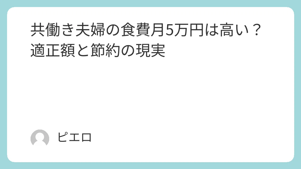 食費に悩む共働き夫婦の皆さん、月5万円は決して高い金額ではありません。むしろ、平均より安い優秀な水準です。