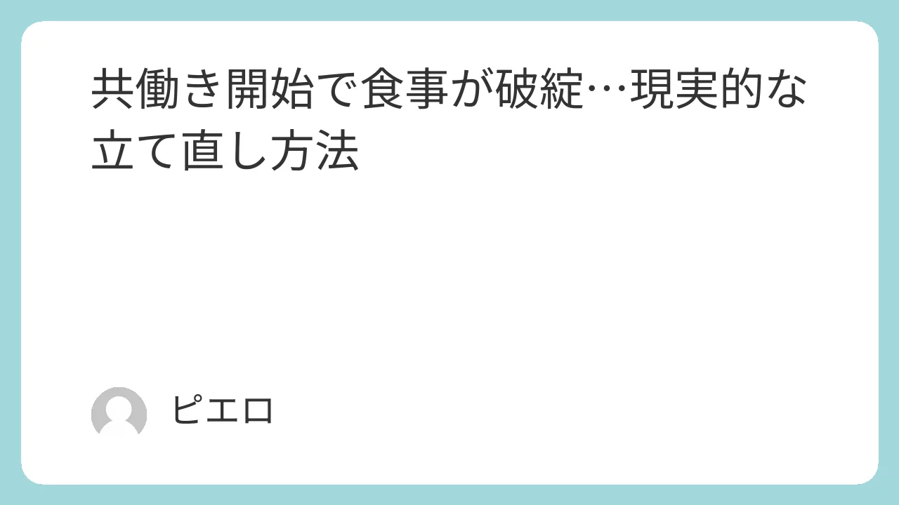 しかし、このまま放置していると、健康面での不安、食費の増大、そして何より夫婦関係のすれ違いにもつながりかねません。今回は、そんな共働き夫婦の食事問題を、無理なく段階的に立て直していく現実的な方法をご紹介します。