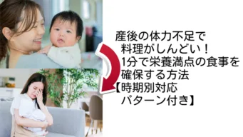 Uncategorized 産後の体力不足で料理がしんどい!1分で栄養満点の食事を確保する方法【時期別対応パターン付き】
